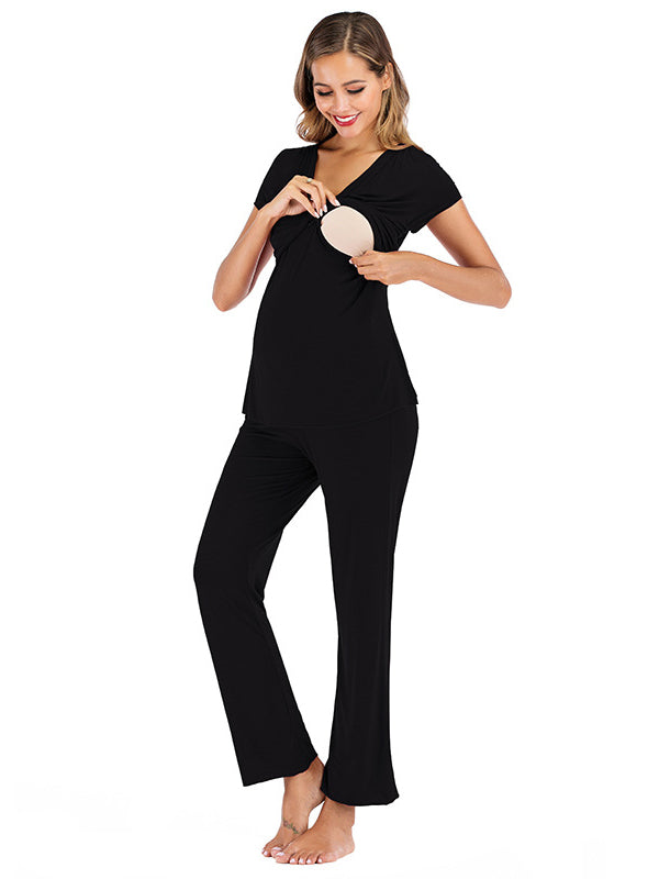 2 Conjuntos Color Sólido Diario Casual Salir Suave Trajes De Lactancia