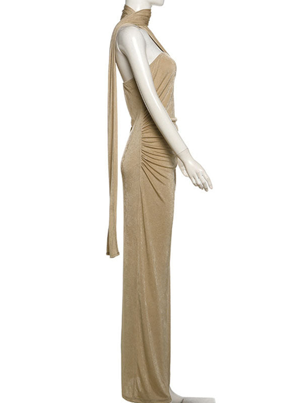 Espalda descubierta Escote palabra de honor cinta Pliegue Elegante Fotografía vestidos premamá fiesta