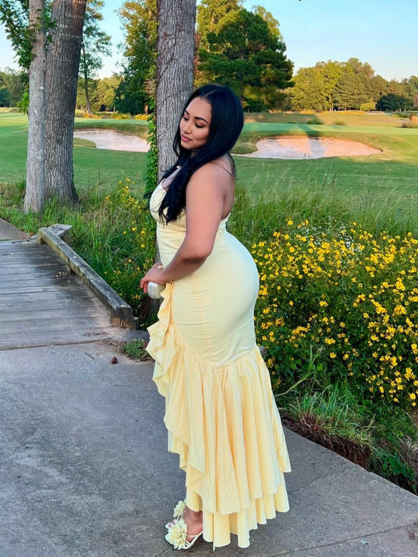 Vestido Maxi de Maternidad con Volantes Abertura Ajustado para Cóctel