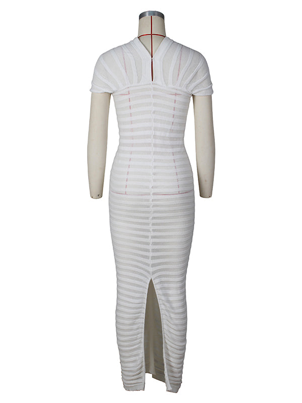 Vestido Maxi de Maternidad de Punto a Rayas con Abertura para Baby Shower